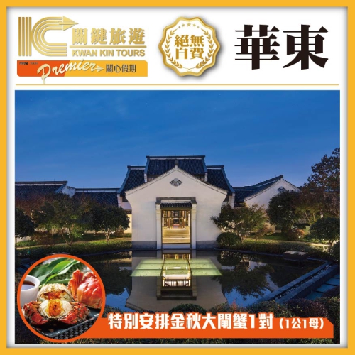 住宿:超班住宿安排 【杭州西溪濕地悅榕莊】豪歎超大1200尺套房、【南京園博園悅榕莊】獨享一房一私湯、【上海外灘悅榕莊】頂層安排軟飲1份觀賞外灘風光 暢遊:【無錫惠山古鎮】賞金秋紅楓、江南名園【寄暢園】賞銀杏、杭州西湖新天地、南京報恩寺、南潯古鎮、杭州西溪濕地國家公園 品嚐:特別安排【金秋蟹宴】(每人一公一母)、金陵代表秦淮菜【八絕十六道小吃】