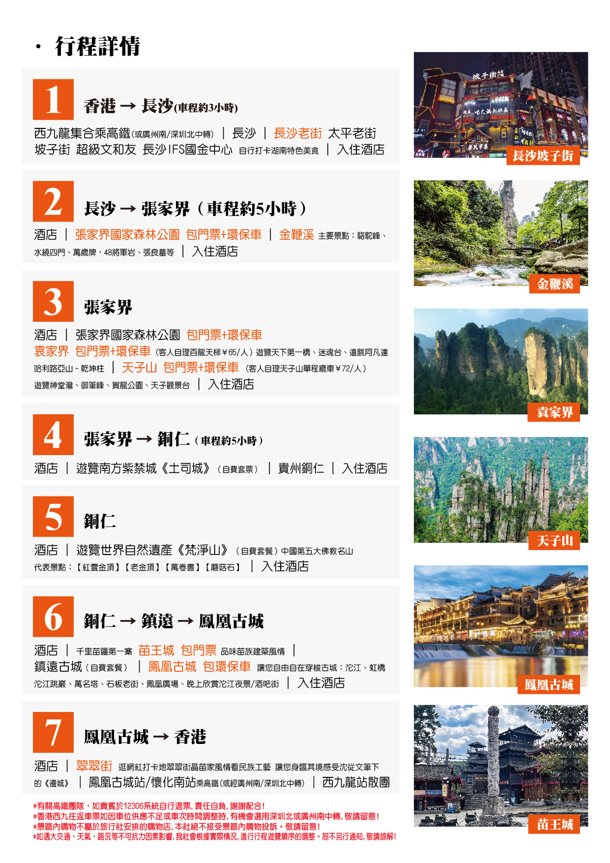 (分享會優惠團)純玩 湖南貴州 長沙 張家界國家森林公園 天子山 袁家界 鳳凰古城 西九往返7天
