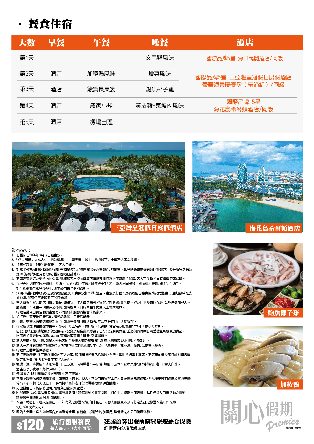 奢住: 全程鎖定國際奢牌酒店,1晚萬豪集團旗下豪華五星【海口萬麗酒店】、連住 2晚洲際集團旗下高端海景【三亞灣皇冠假日度假酒店】、1晚希爾頓集團旗下頂奢【海花島希爾頓酒店】 味蕾:一站式暢享瓊菜全席 量身定制七個特色餐食文昌雞風味│|加積鴨風味│簸箕長桌宴│ 鮑魚椰子雞 暢玩:直航免轉機+經典網紅景點全覆蓋 全程0購物 0自費 鹿回頭山頂公園(包電瓶車)、檳榔谷黎苗文化園(包電瓶車