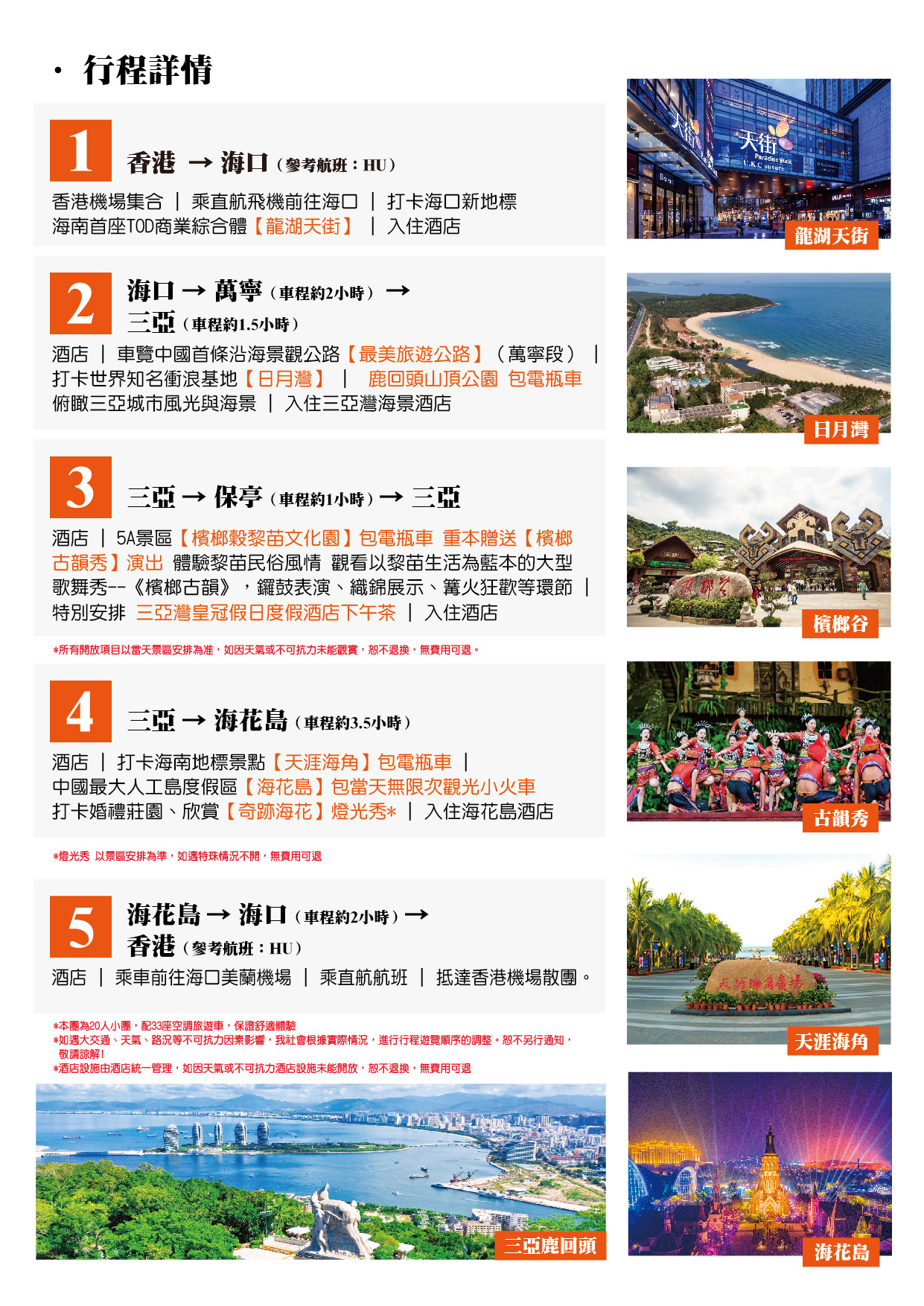 【直航】奢享海南 全程國際品牌五星 逛椰城 玩三亞 品瓊味 天涯海角 海花島 純玩無自費 5天